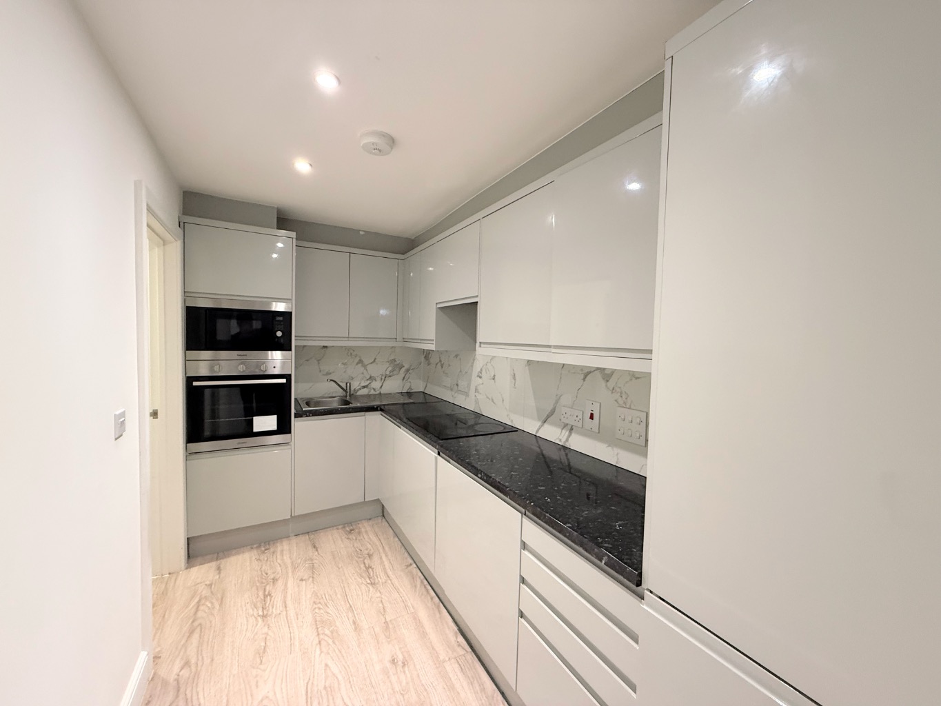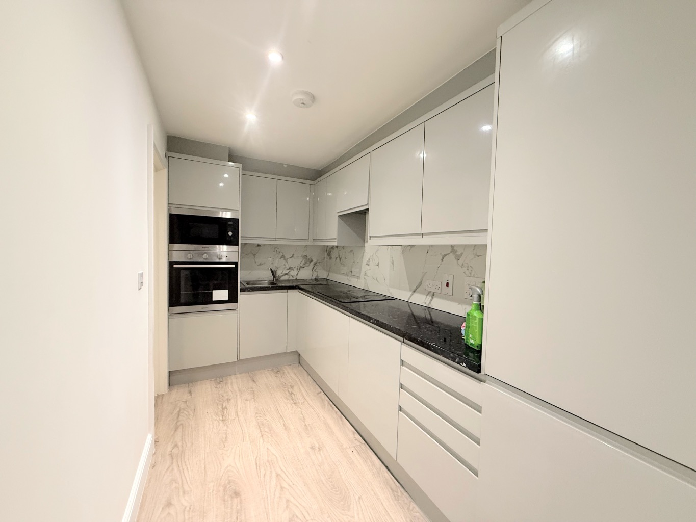 Step inside and you'll immediately appreciate the crisp neutral decor and stylish laminate flooring that flows seamlessly through the home. The heart of this flat is undoubtedly the stunning contemporary kitchen, featuring high gloss units that offer both elegance and practicality. It's a space designed for enjoying cooking and entertaining, with ample room for all your culinary adventures.