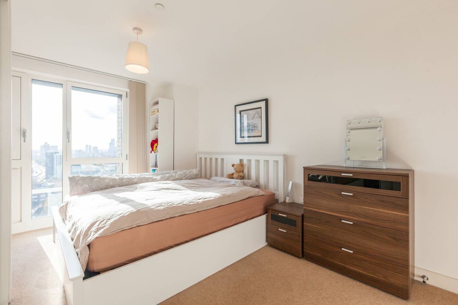 The thoughtfully designed kitchen area boasts integrated appliances, including a dishwasher, making daily routines a breeze. It's a practical and stylish space where you can easily prepare meals and enjoy company. The living area flows seamlessly from the kitchen, providing plenty of room for relaxation and socialising. A real highlight is the private balcony, offering captivating views of London's iconic skyline. Imagine enjoying your morning coffee or unwinding in the evening, taking in the vibrant city lights from your own peaceful retreat.