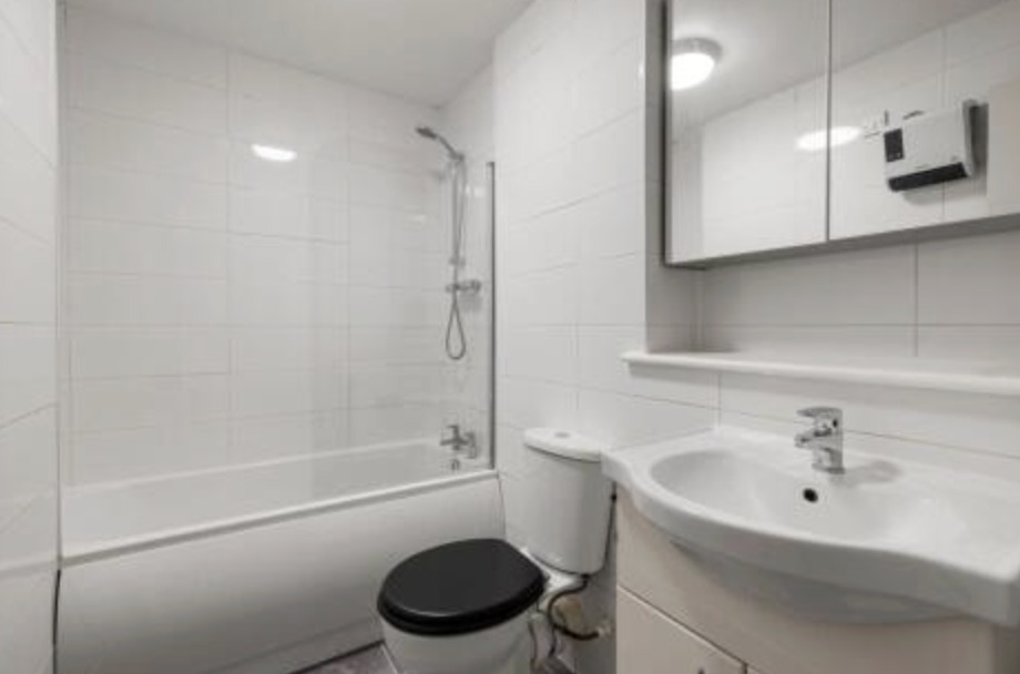 Completing the interior is a tiled bathroom, featuring a refreshing shower, perfect for unwinding. It's neat and low-maintenance, designed for practicality and ease of use.