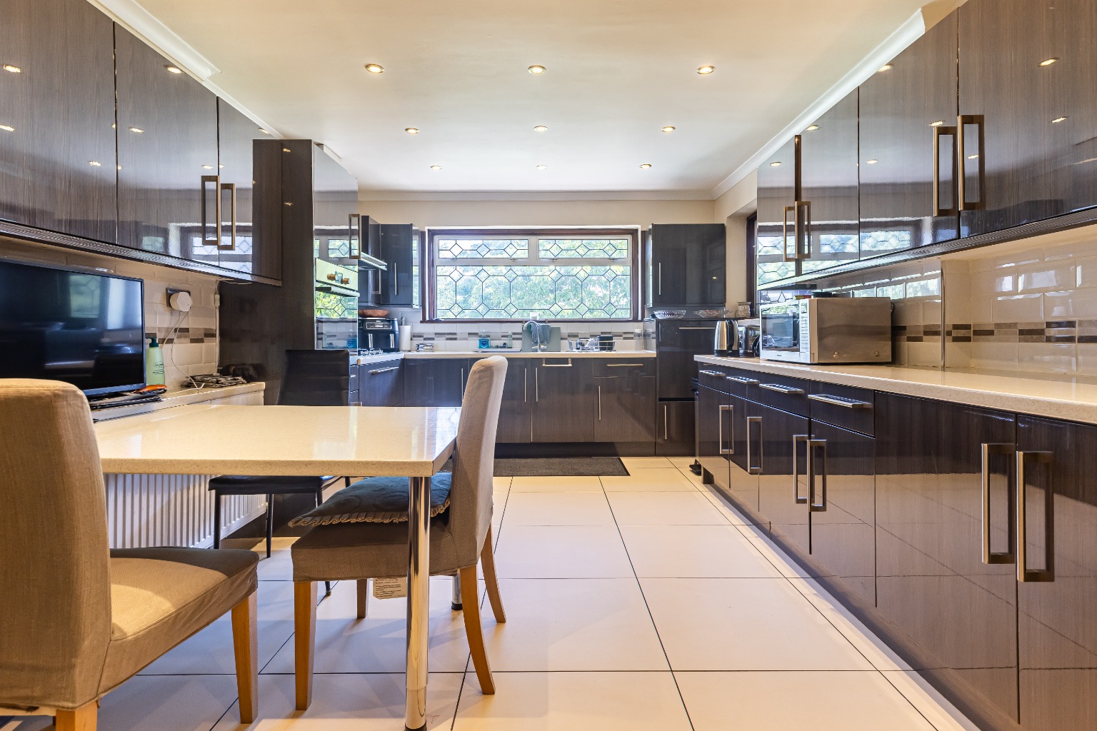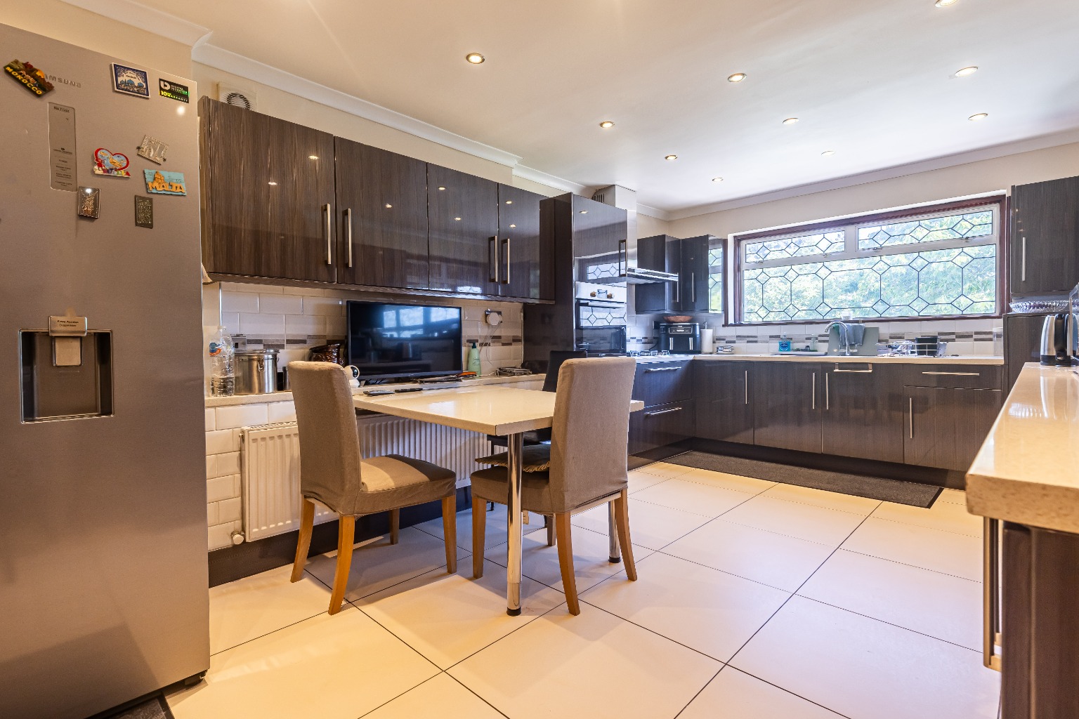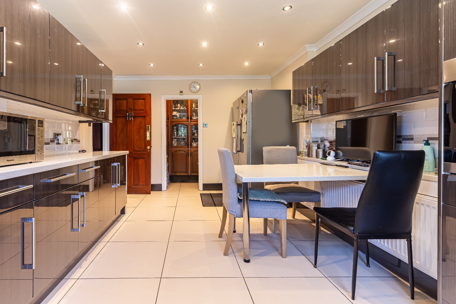 Upon entering, the home immediately impresses with its expansive layout and thoughtful design. Two generous reception rooms provide versatile spaces that can accommodate a range of functions, from formal entertaining to relaxed family evenings. Large windows flood these areas with natural light, enhancing the sense of openness throughout.