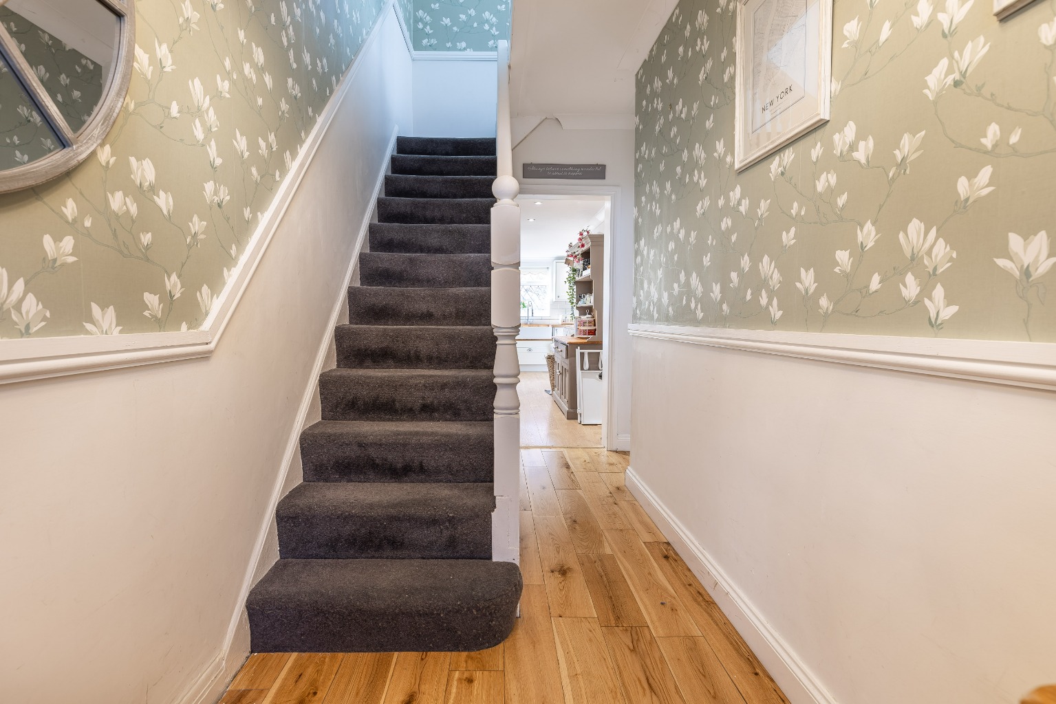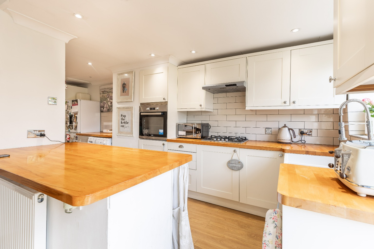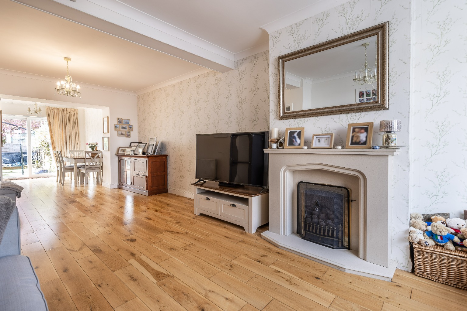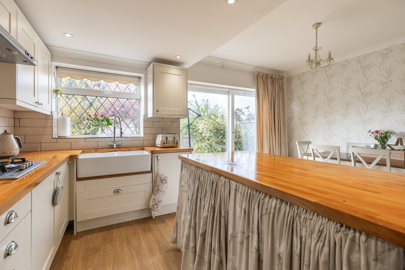 Continuing through, the house offers an open plan kitchen with a breakfast bar, seamlessly flowing into a well-designed dining area. The kitchen is modern and fully fitted, allowing for smooth culinary experiences. It also features patio doors that lead onto the patio and south facing garden, providing a delightful outdoor space for al fresco dining, gardening, or simply unwinding after a long day.