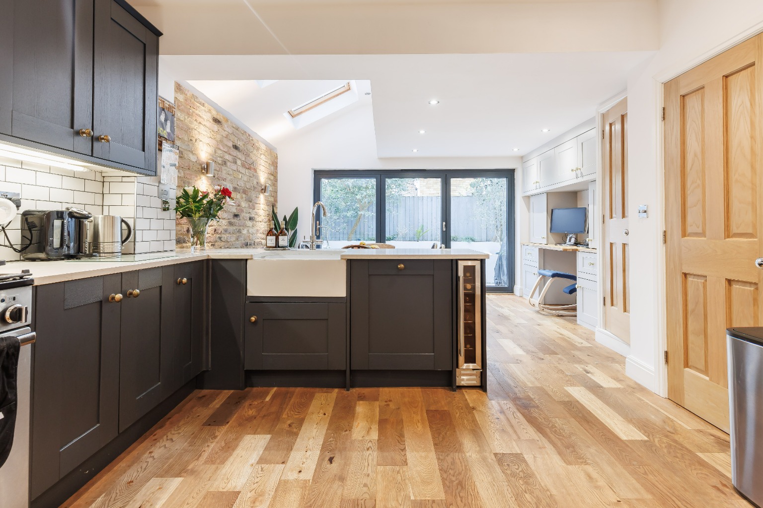The bi-folding doors in the kitchen lead you to a low-maintenance terrace, offering a peaceful outdoor space to relax & entertain. Enjoy the privacy and tranquillity of your own little retreat amidst the bustling city.