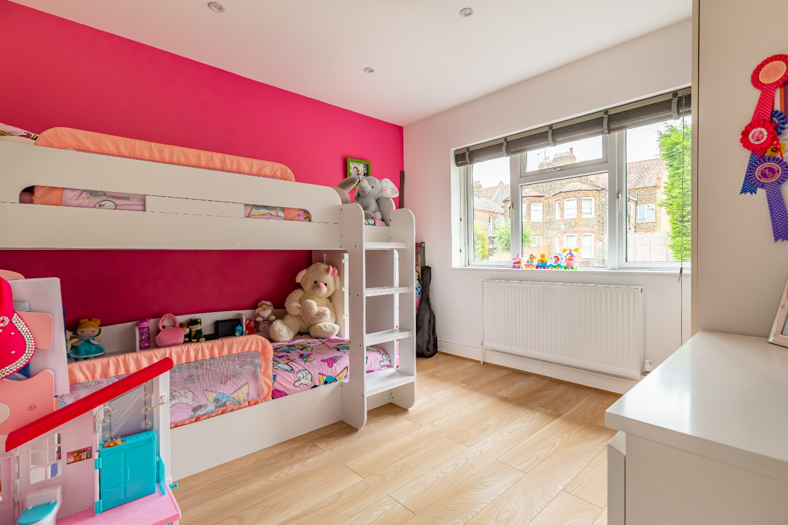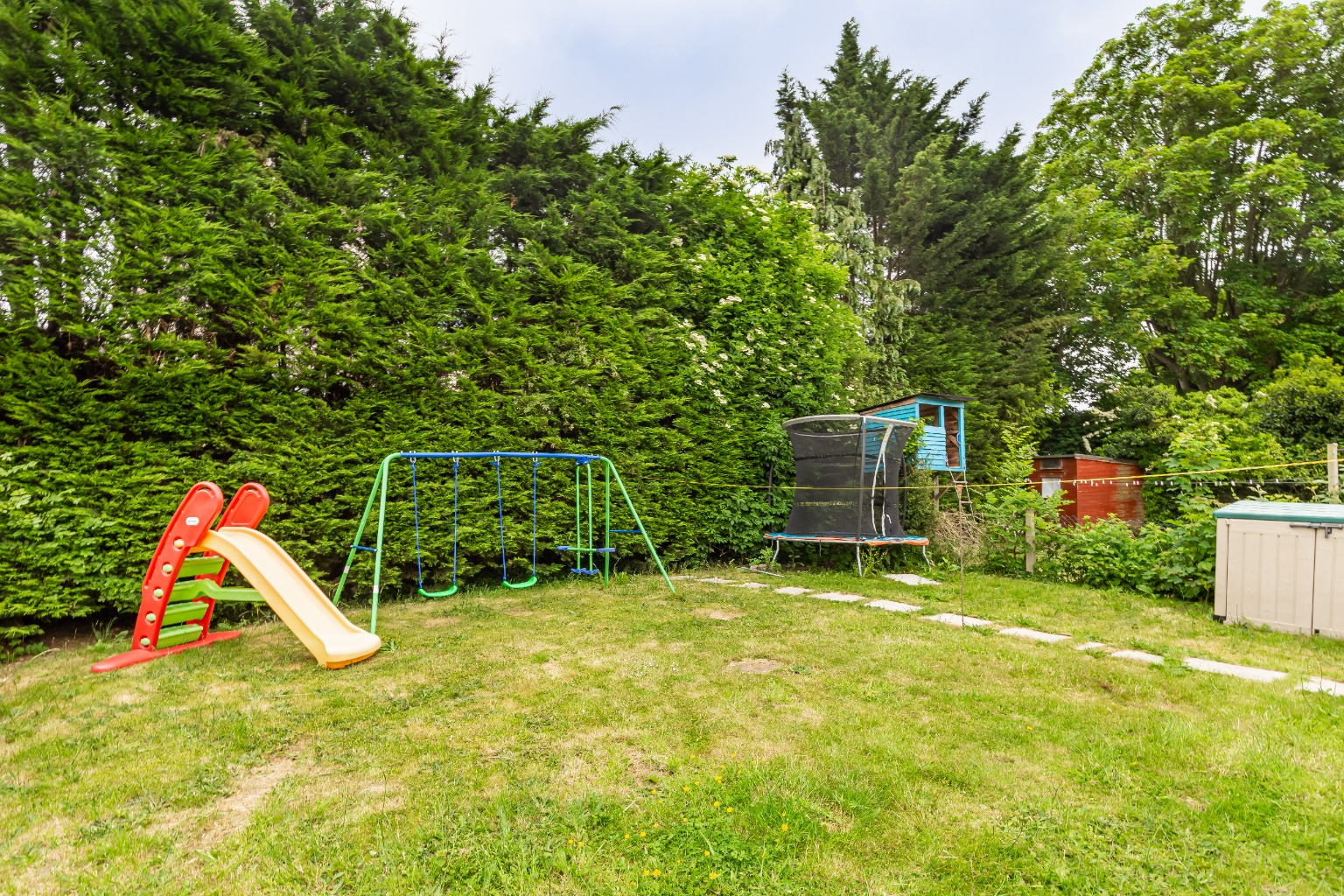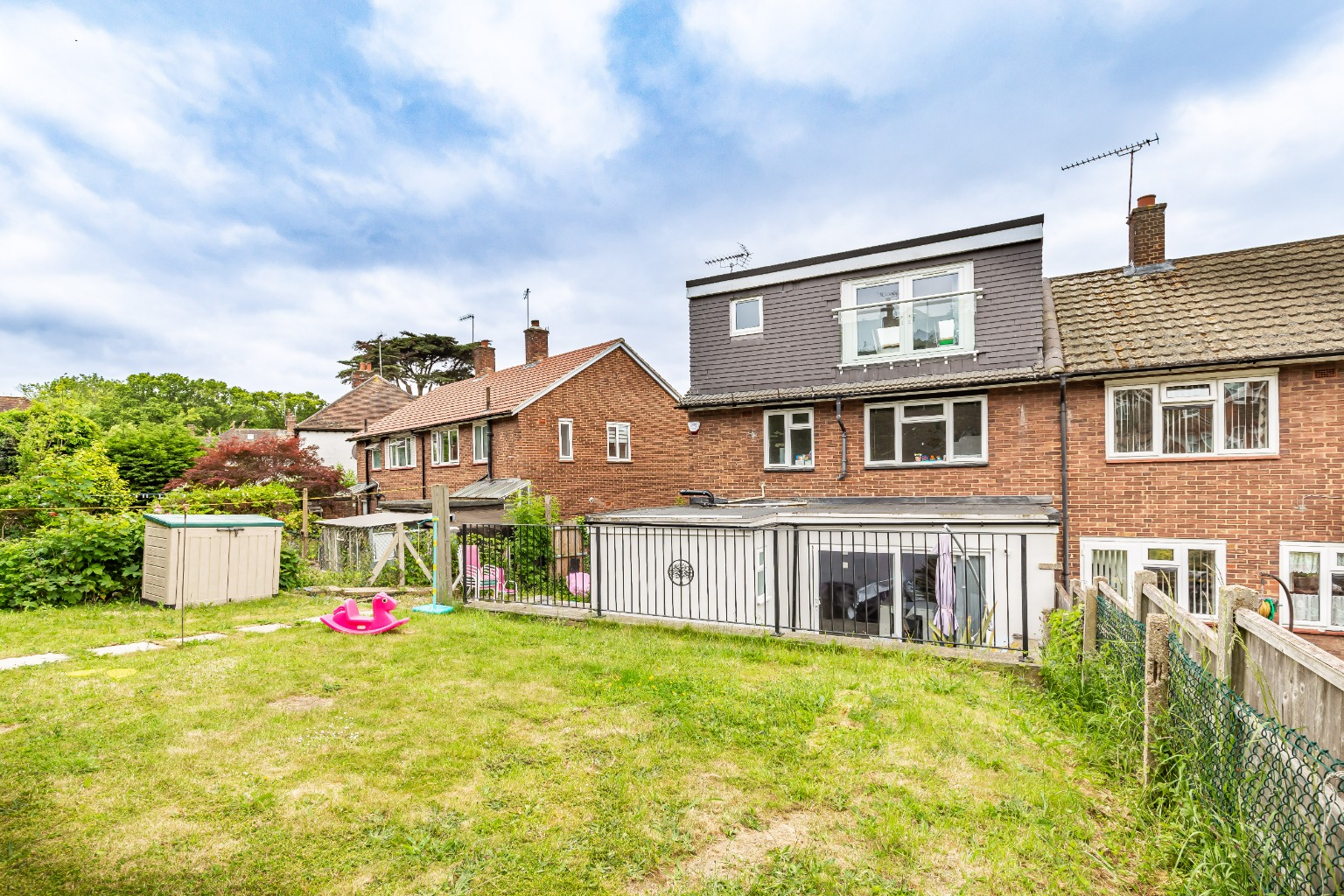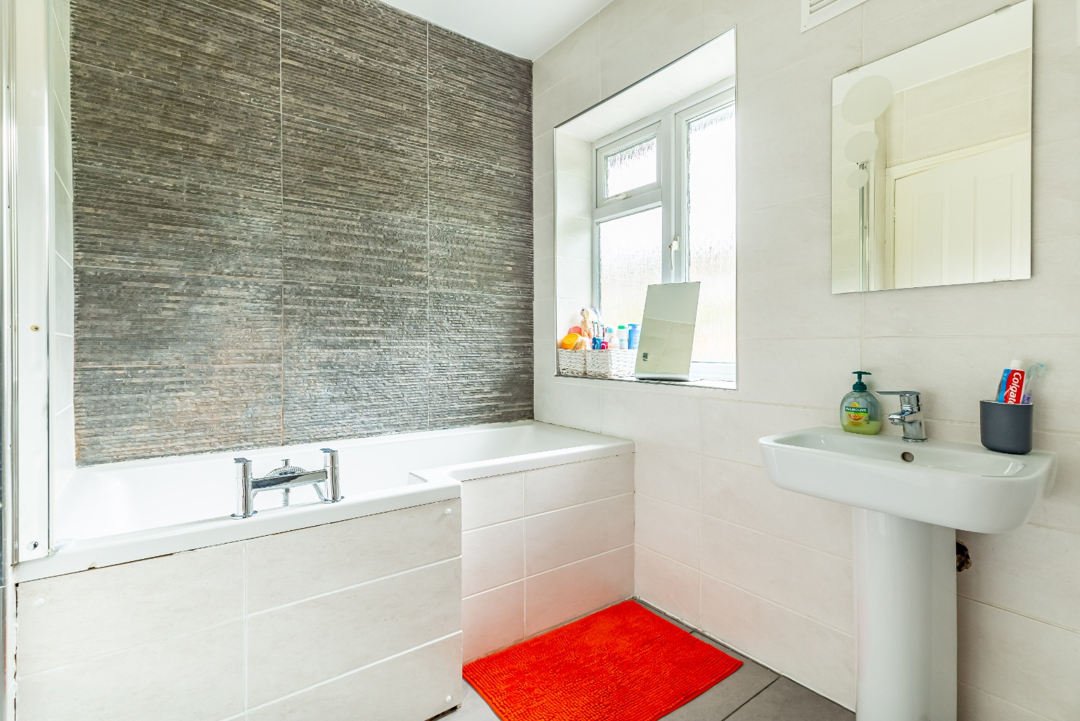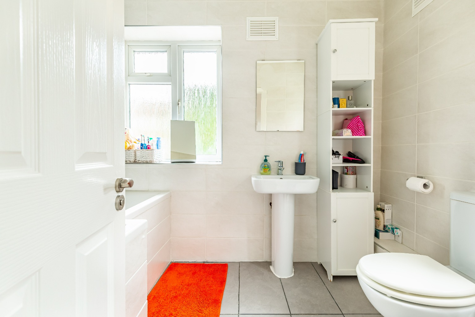 The rear garden is set over two levels with a delightful flag stone patio, perfect for bbq's and al fresco dining, while the raised lawn area provides a fantastic space for the little ones to play! The first floor of the property has a generous landing, three well appointed bedrooms and a fully tiled family bathroom.