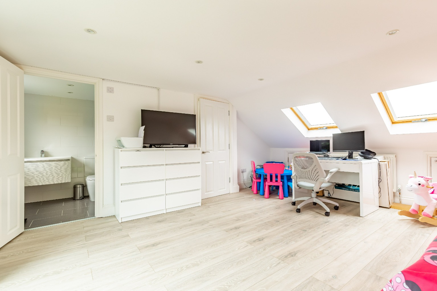 The second floor is simply stunning, offering an exceptionally spacious and bright principal bedroom with Juliet balcony overlooking the garden to rear complete with en suite shower and views from the skylights out towards The City! Further features include a ground floor w.c, ample storage both inside and outside, laminate flooring and tasteful decor.