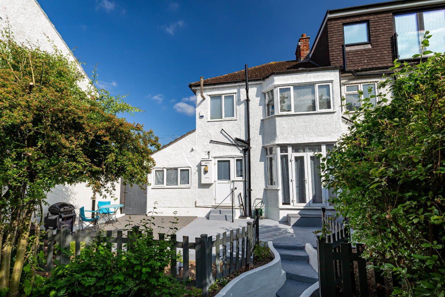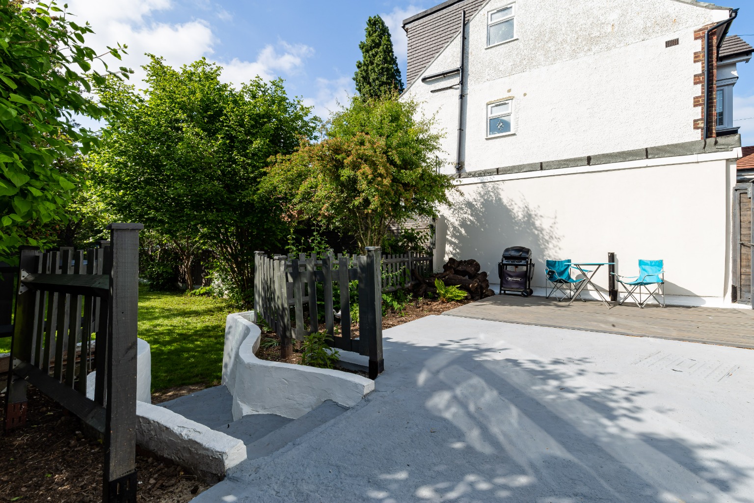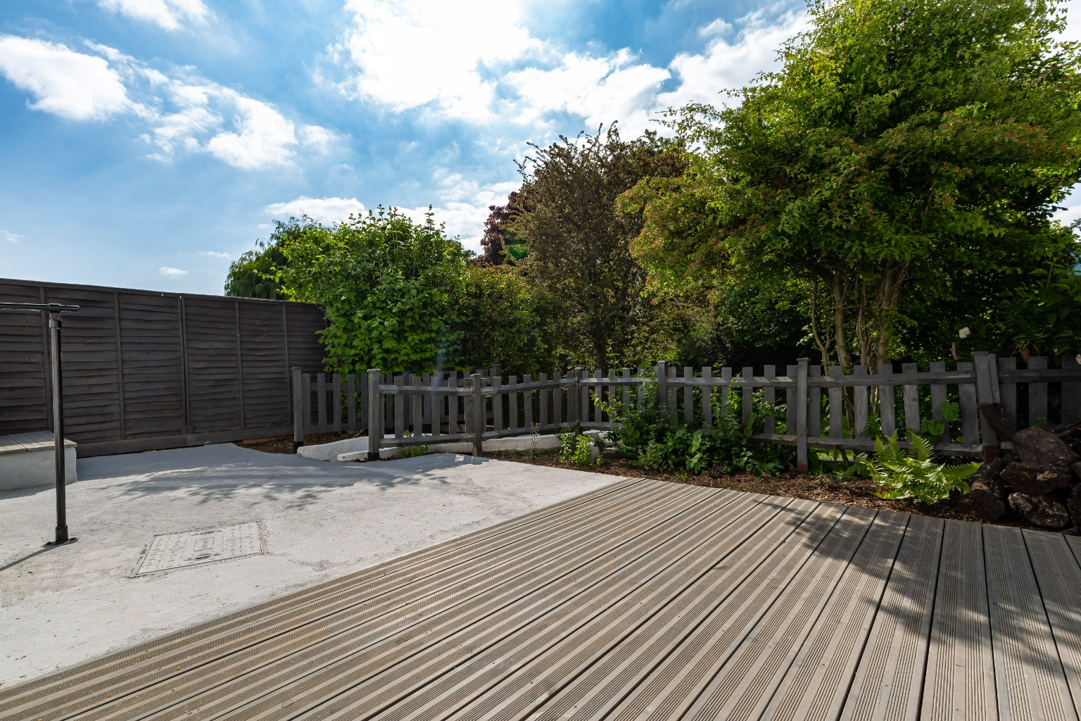 The property boasts a large and beautifully presented garden, which is partially decked and also offers side access. The front garden is paved and allows space for 2 vehicles.