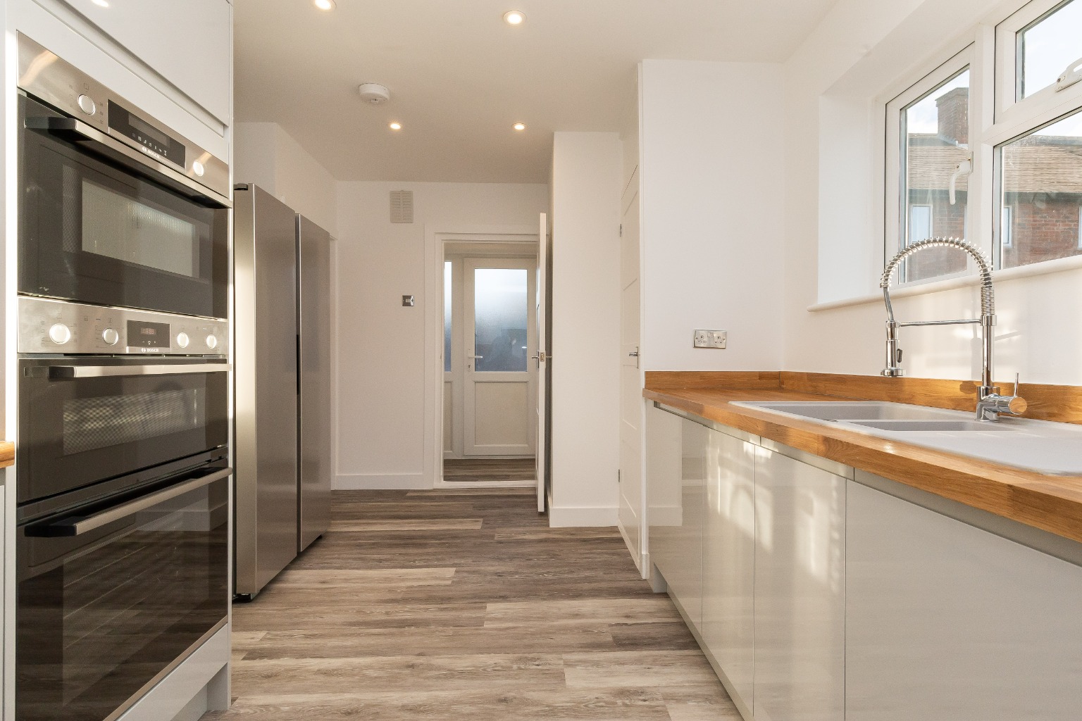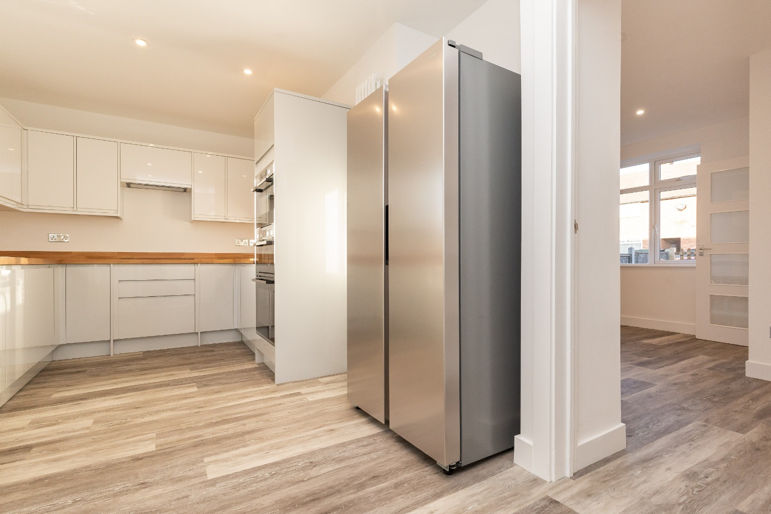 Fitted Kitchen with Integrated Double Oven, Microwave, Dishwasher and American Fridge Freezer