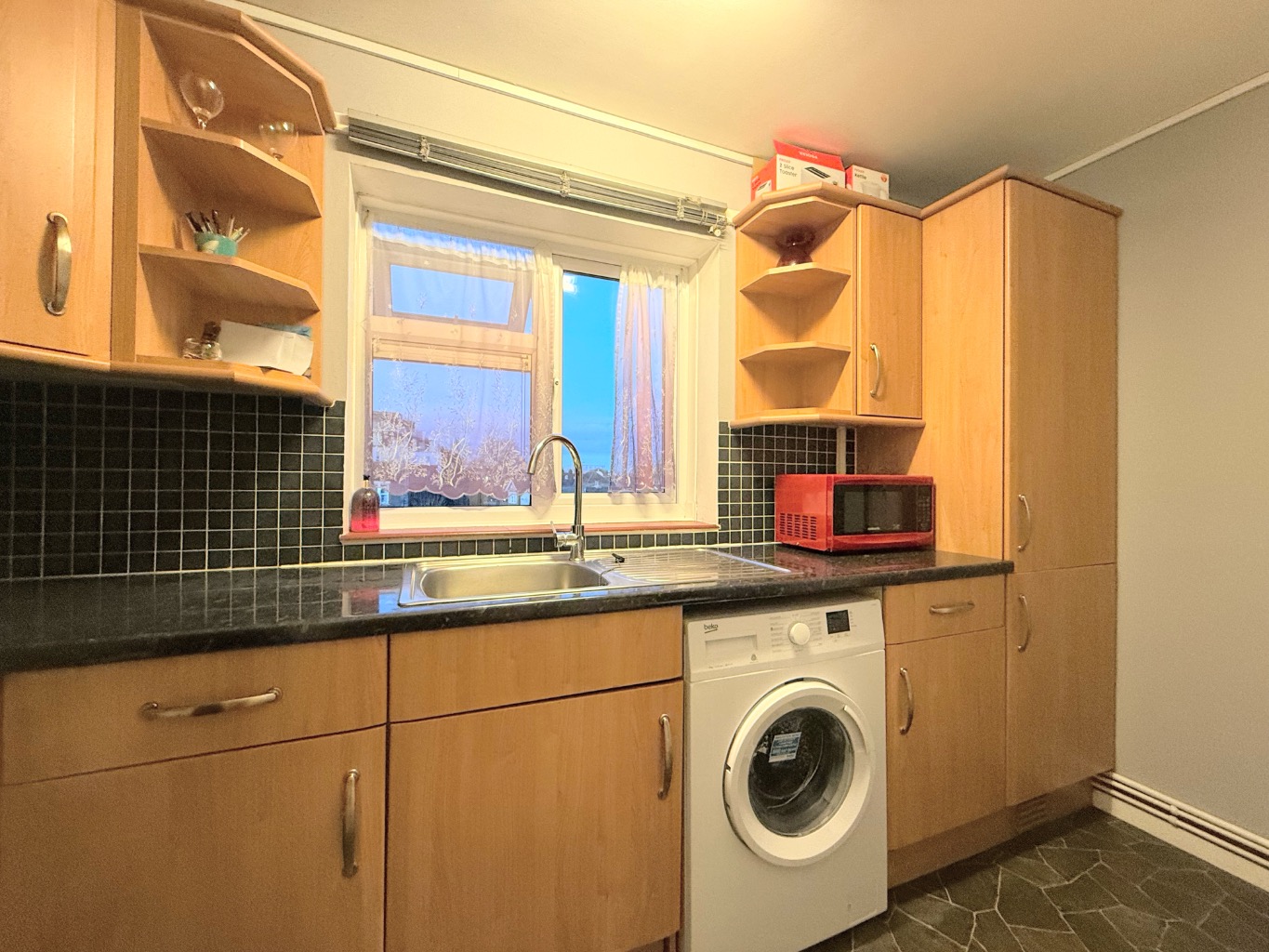 The fully fitted kitchen is equipped with main appliances, providing everything you need to whip up delicious meals. The contemporary design, with sleek countertops and ample storage space, ensures both functionality and style.