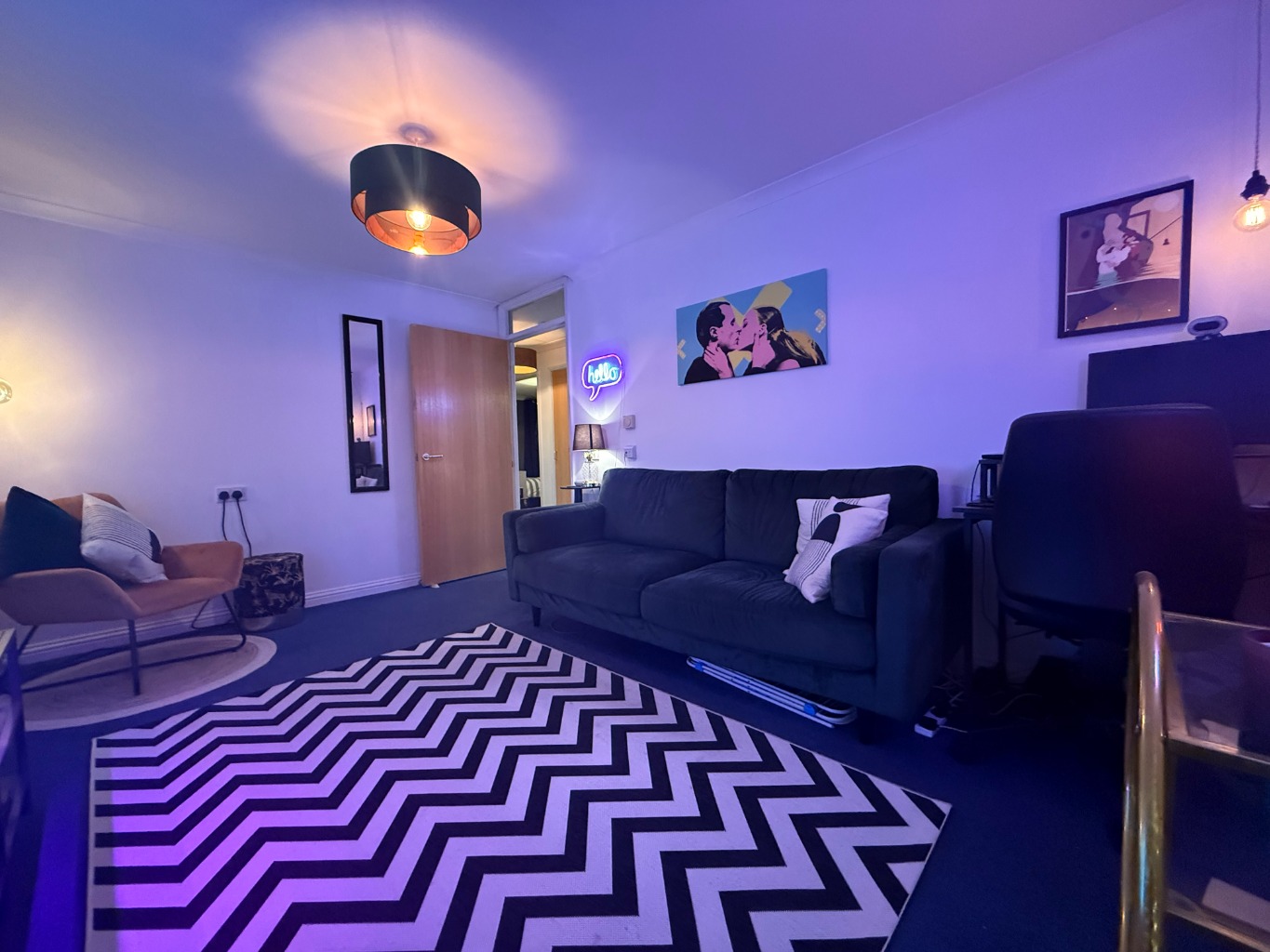 As you step into the apartment, you'll be greeted by the spacious and inviting lounge area. Large enough to accommodate both a comfortable seating arrangement and a dining table, this versatile space is perfect for entertaining friends or enjoying cozy nights in with your loved ones. The lounge also boasts a Juliet balcony, filling the room with an abundance of natural light while offering a peaceful retreat from the bustling city outside.