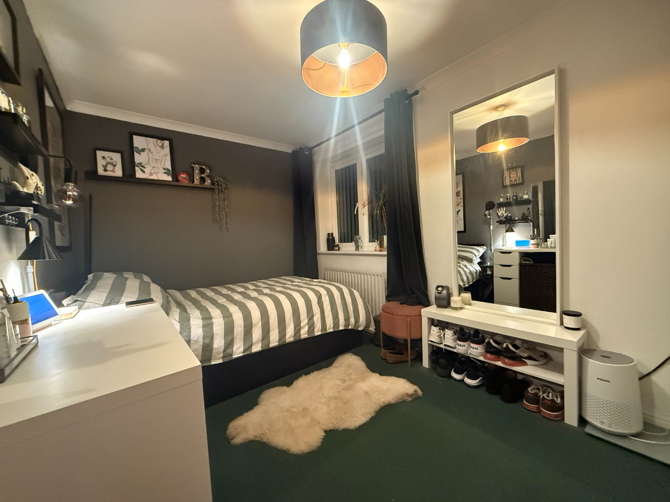 The fitted kitchen, adjacent to the lounge, features ample storage space and modern appliances, providing you with all the necessary amenities for convenient cooking and dining. The room also offers plenty of space for a dining area, allowing you to enjoy meals in the comfort of your own home.