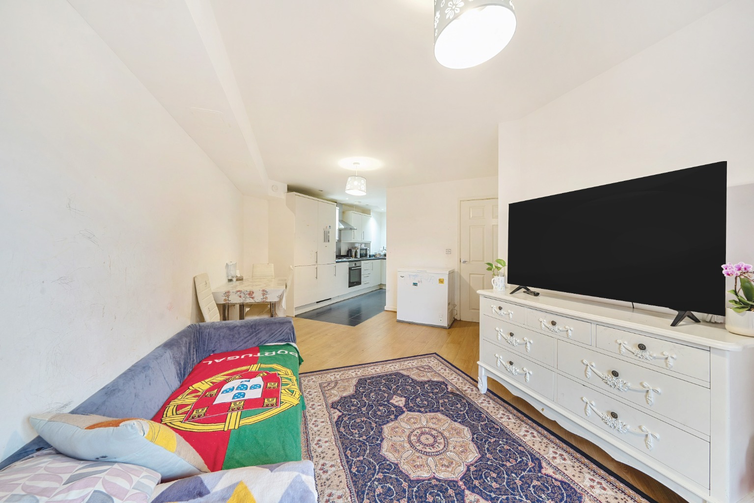 As you step into the apartment, you'll be immediately impressed by the open-plan layout. The spacious living area seamlessly flows into the dining space and kitchen, creating a welcoming and sociable atmosphere. Large windows bathe the room in natural light, while sleek flooring adds a touch of elegance. The neutral colour scheme throughout the apartment serves as a blank canvas, allowing you to add your personal touch and make it truly your own.