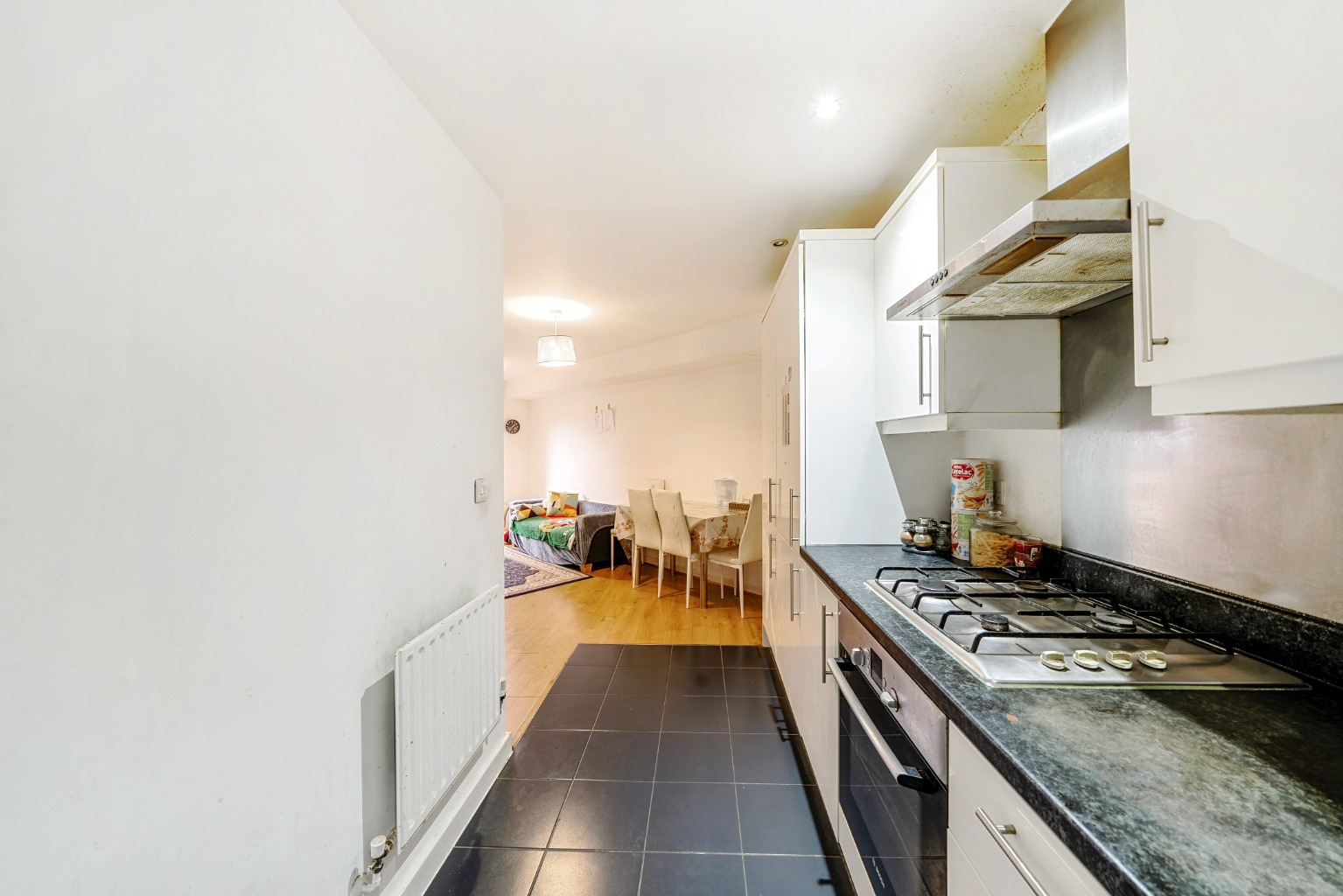 The kitchen is well equipped with integrated appliances, ample storage space, and a contemporary design. Whether you're preparing a quick weekday meal or entertaining guests, this kitchen offers both functionality and style. The open plan allows you to interact with guests or family members while taking care of culinary duties.