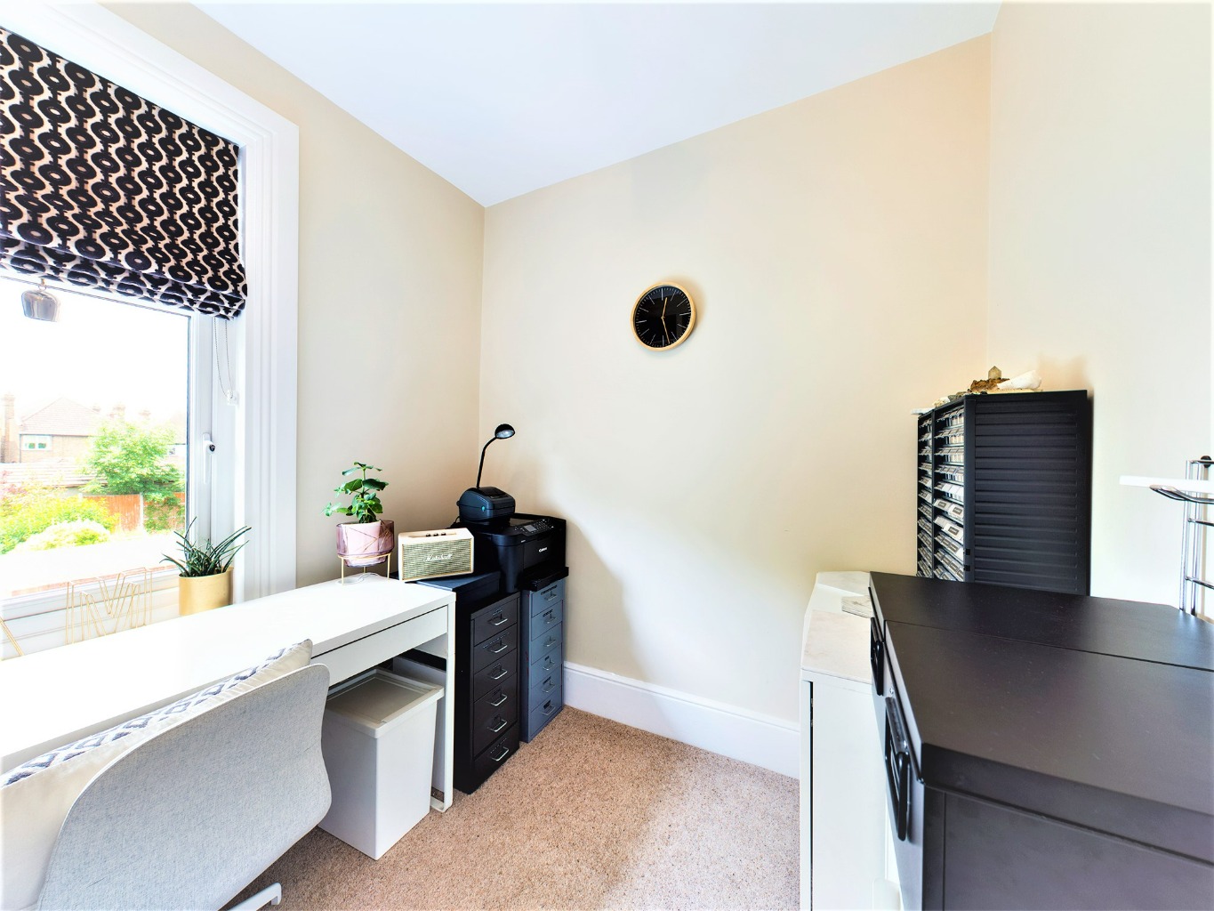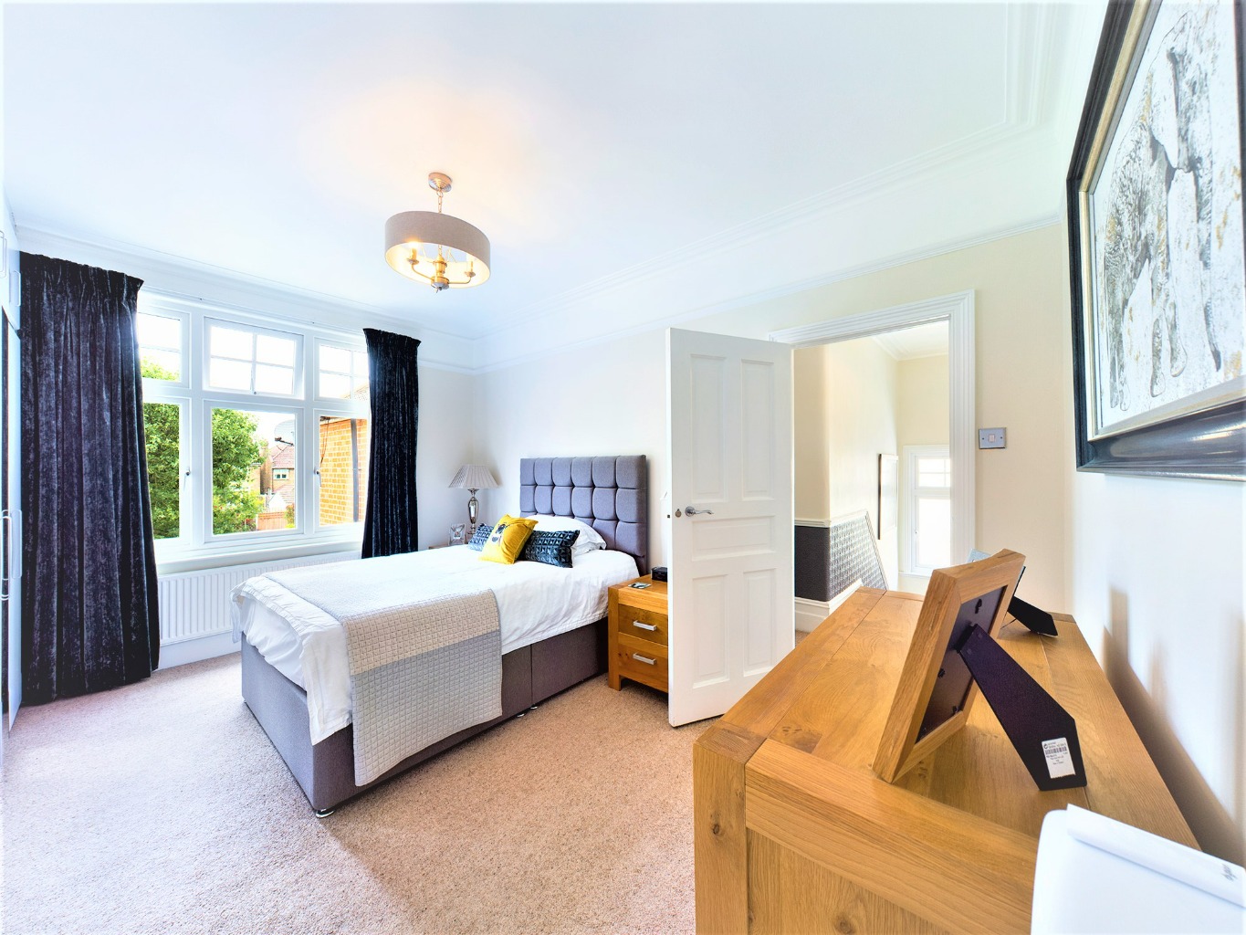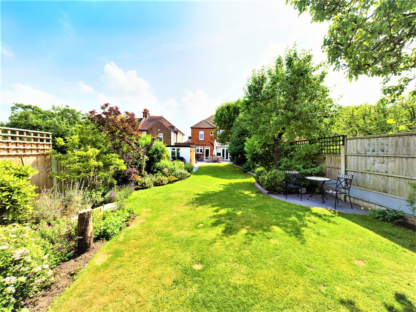 From the first floor landing you enter the main bedroom with large bay window and feature fireplace, second bedroom with views over the garden, third bedroom with feature fireplace then down the hallway to the forth bedroom, fitted family bathroom, separate wc and fifth bedroom/study, again overlooking the lovely garden. The South / West facing garden is beautifully mature with planted borders, large lawn and patio area, ideal for entertaining on sunny summers evenings. The front driveway enables off–street parking.