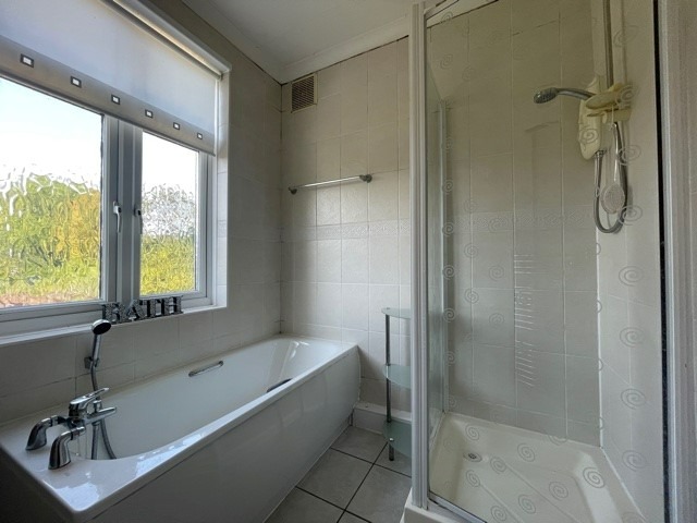 Tiled Bathroom with Tub & Step In Shower