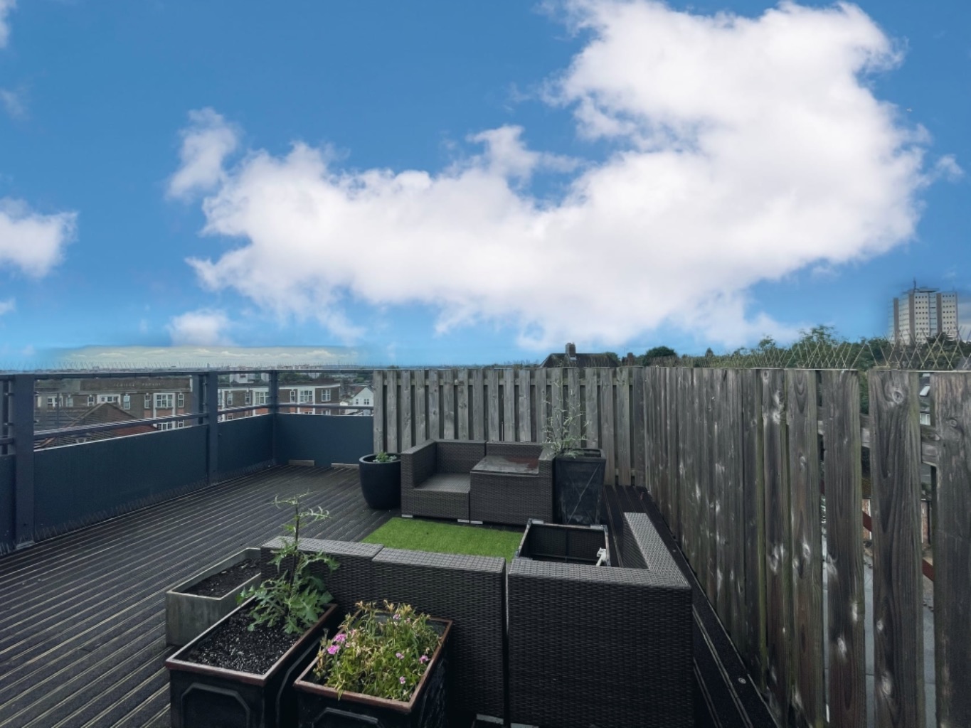 One of the standout features of this apartment is the impressive private roof terrace, offering breathtaking views of the surrounding area. This secluded outdoor space is the perfect retreat to unwind, entertain guests, or simply soak up the sun. Whether you're hosting a small get-together, relaxing with a book, or enjoying a summer barbecue, the roof terrace provides a versatile space for all of your needs.