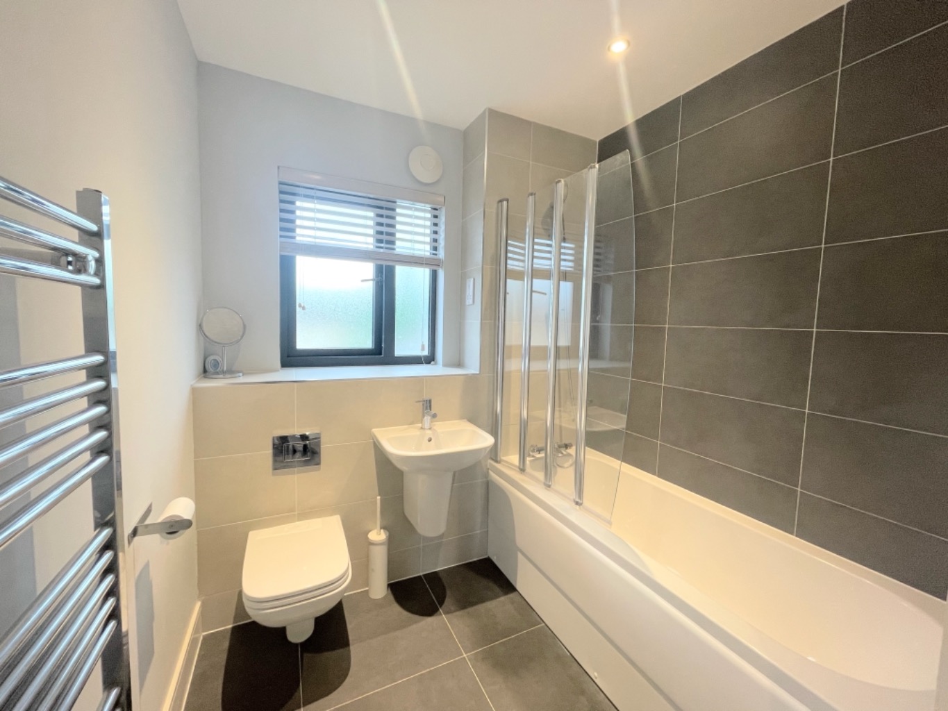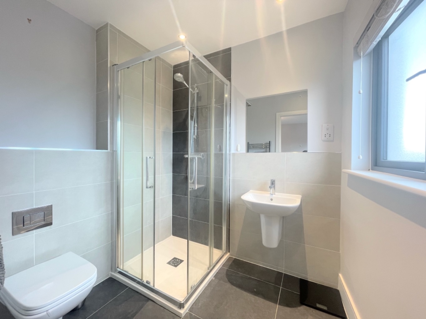 The apartment offers two generously sized double bedrooms, each providing a peaceful haven for rest and relaxation. The master bedroom benefits from an en-suite bathroom, complete with a luxurious shower, while the second bedroom is serviced by a conveniently located family bathroom. Both bathrooms display elegant fixtures and contemporary design.