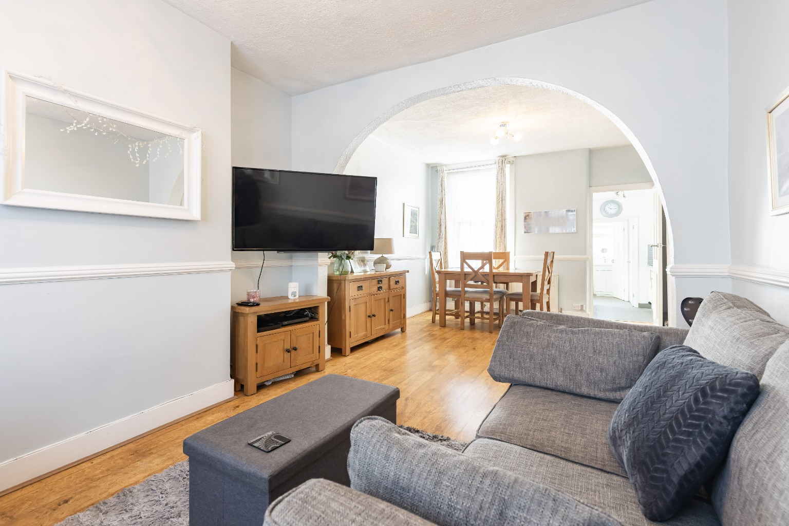 As you step inside, you'll be greeted by the beautiful brick fronted facade that exudes character and charm. The interior boasts a spacious through lounge, providing ample room for both relaxation and dining. The large windows flood the room with natural light, creating a warm and inviting atmosphere.