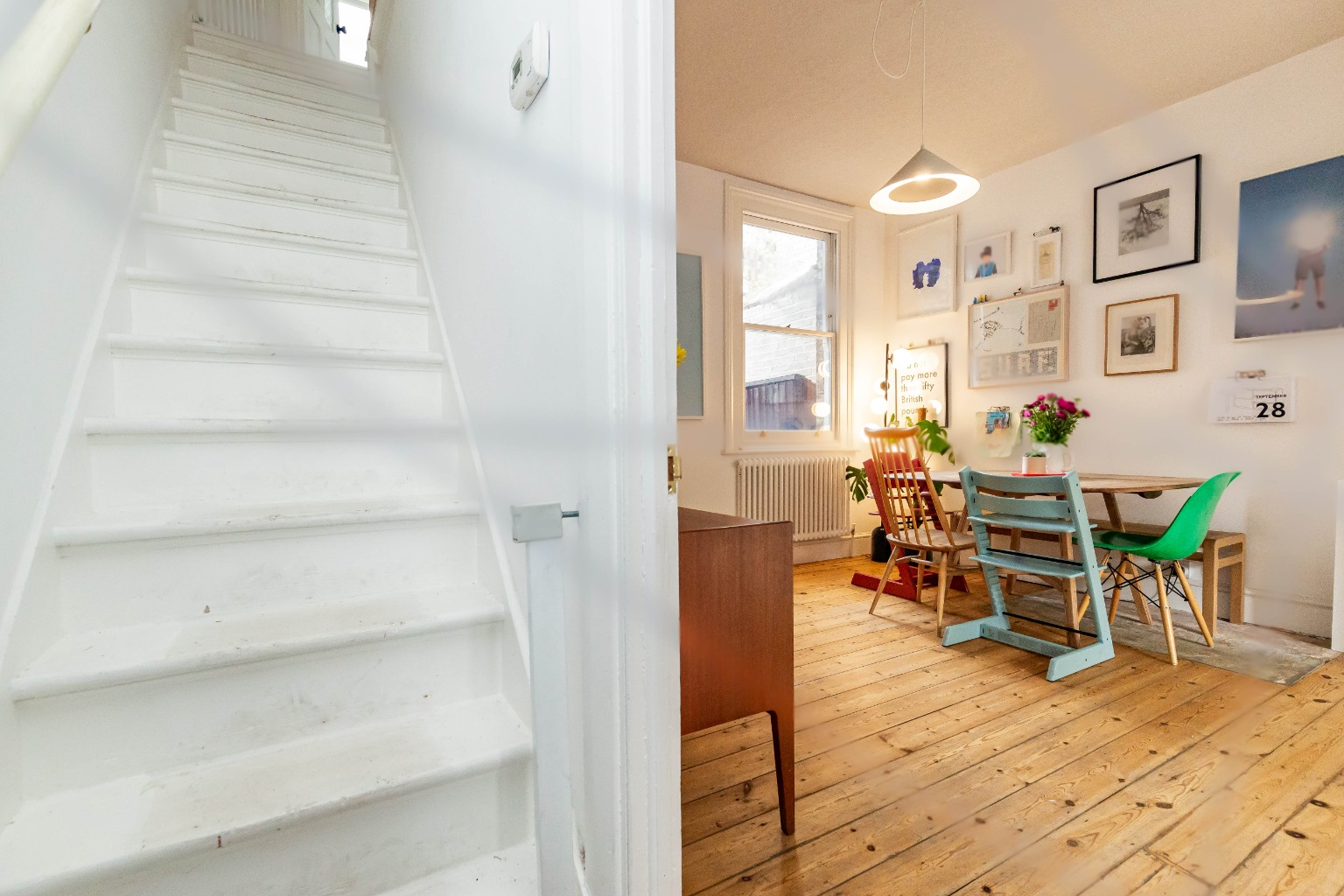 The property has been expertly refurbished and modernised throughout, for todays lifestyle, yet within keeping of the beautiful original features this glorious home has to offer. The entrance hall takes you through to the impressive split living area, offering cosy lounge with log burner, bay window and window shutters to the front of the property, the rear offers a spacious dining area just off the beautifully fitted kitchen with integrated appliances including washing machine and dishwasher. The garden is a delight with mature shrub borders, established fig tree and garden shed. Upstairs to the first floor level you are greeted with a spacious tiled bathroom with bath and rainfall shower, two double bedrooms, the largest to the front of the house has two large sash windows with window shutters, then to the second floor loft conversion offering a 4th bedroom, which could be utilised as a study or even a walk in wardrobe to compliment the main bedroom which is positioned to the front of the property. This stunning room bathes in natural light from the large skylights and rear facing window, there is an assortment of bespoke fitted cupboards and drawers and a fantastic en suite shower.