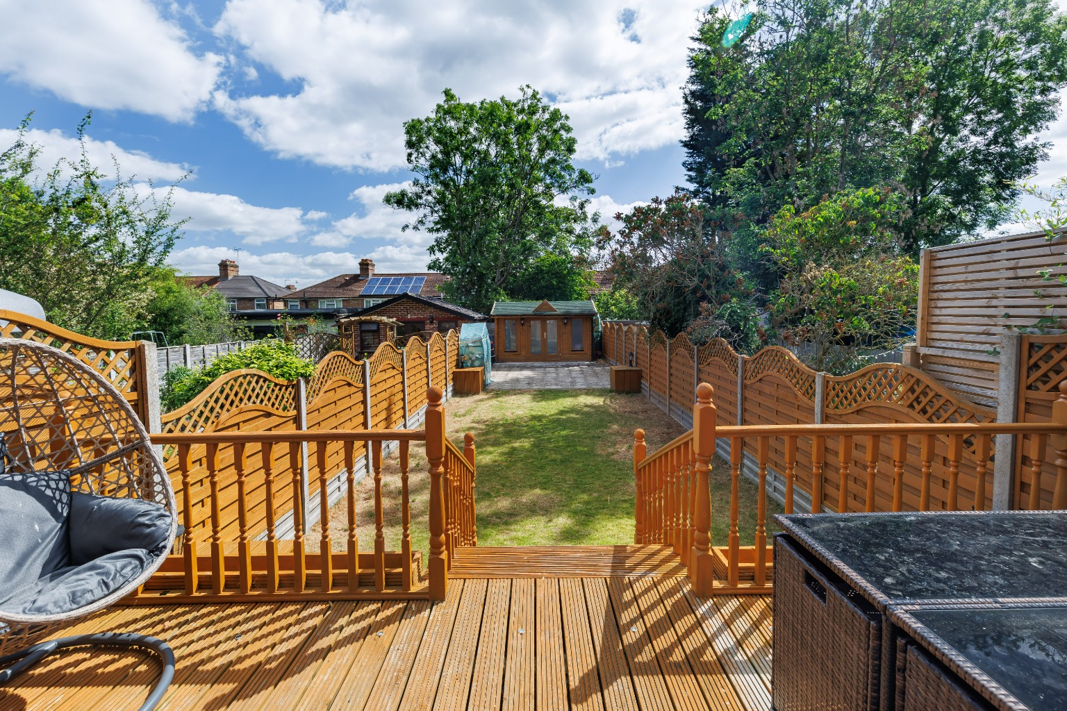 One of the property's standout features is the spacious garden, ideal for outdoor entertaining, al fresco dining, or simply relaxing in the sun. The well-maintained lawn serves as an excellent space for children to play, while the decked area offers an inviting spot for hosting barbecues or enjoying quality time with family and friends.