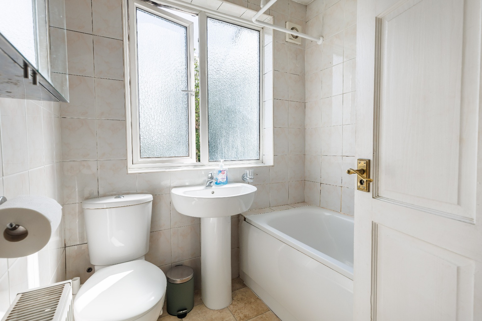 The property comprises three generously-sized bedrooms, each thoughtfully designed to provide a tranquil retreat and generous storage options. The tasteful decor and neutral color scheme effortlessly create a calming atmosphere, ideal for restful nights and peaceful dreams. The abundance of natural light, coupled with the beautiful views of the garden, further enhances the charm of these comfortable spaces.