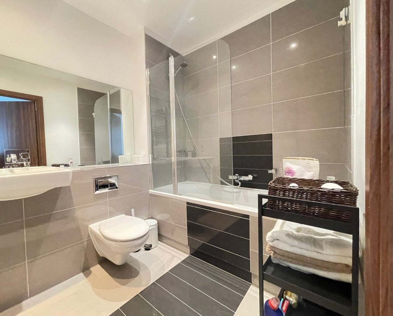 The apartment boasts two well-proportioned double bedrooms, ensuring ample space and comfort for residents. Each bedroom is designed to be a peaceful retreat, offering a quiet haven away from the hustle and bustle of city life. The generous sizing means you'll have plenty of room for a double bed, wardrobes, and additional furniture, allowing you to personalise your space. The natural light flooding into these rooms creates a bright and airy atmosphere, contributing to a sense of calm and relaxation.