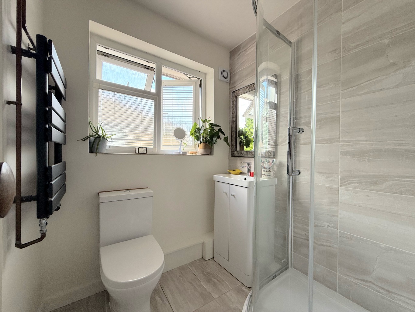 The new bathroom is another standout feature, boasting a modern design and a convenient step-in shower. It's a fresh, clean space that offers both functionality and a touch of contemporary elegance, ensuring your daily routines are comfortable and efficient.