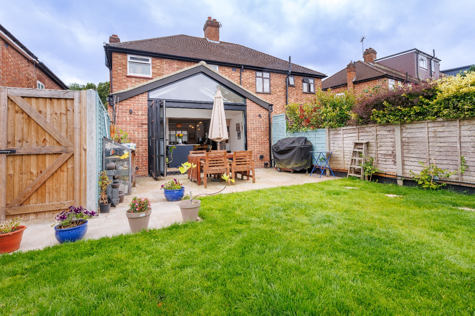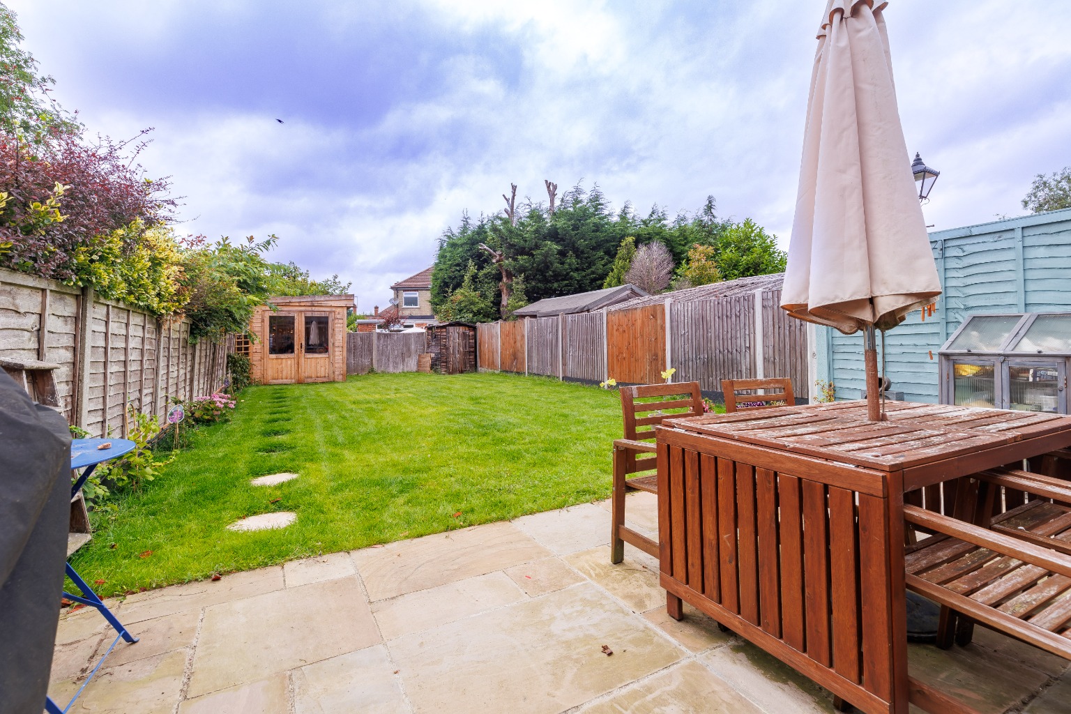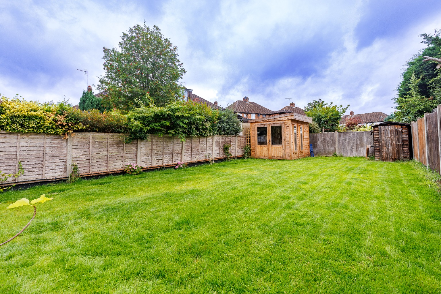 The garden, laid to lawn, provides a tranquil retreat, perfect for relaxing or hosting summer gatherings. Additionally, a garden room offers the flexibility to be used as a home office, gym, or even a playroom for the little ones.