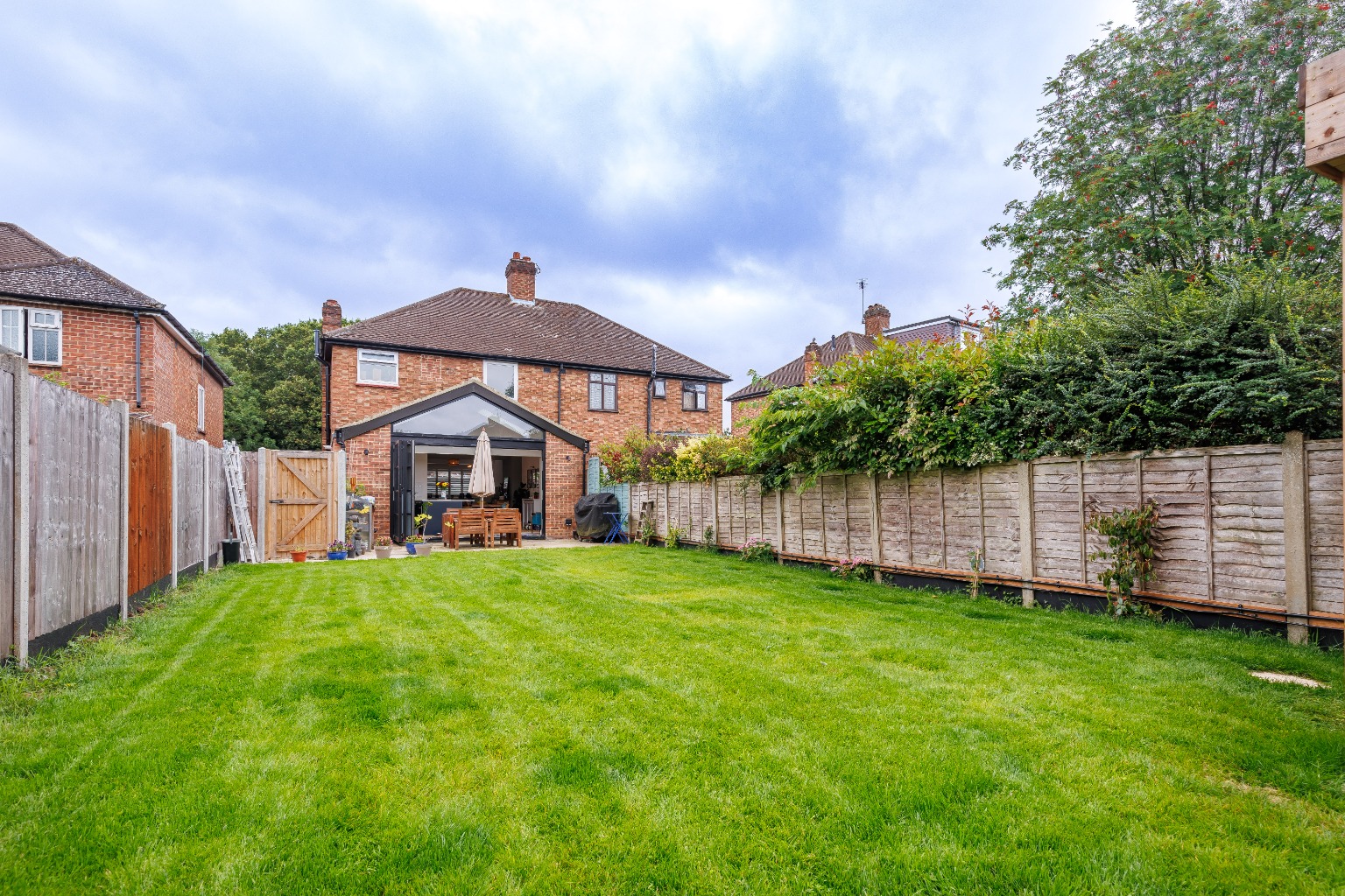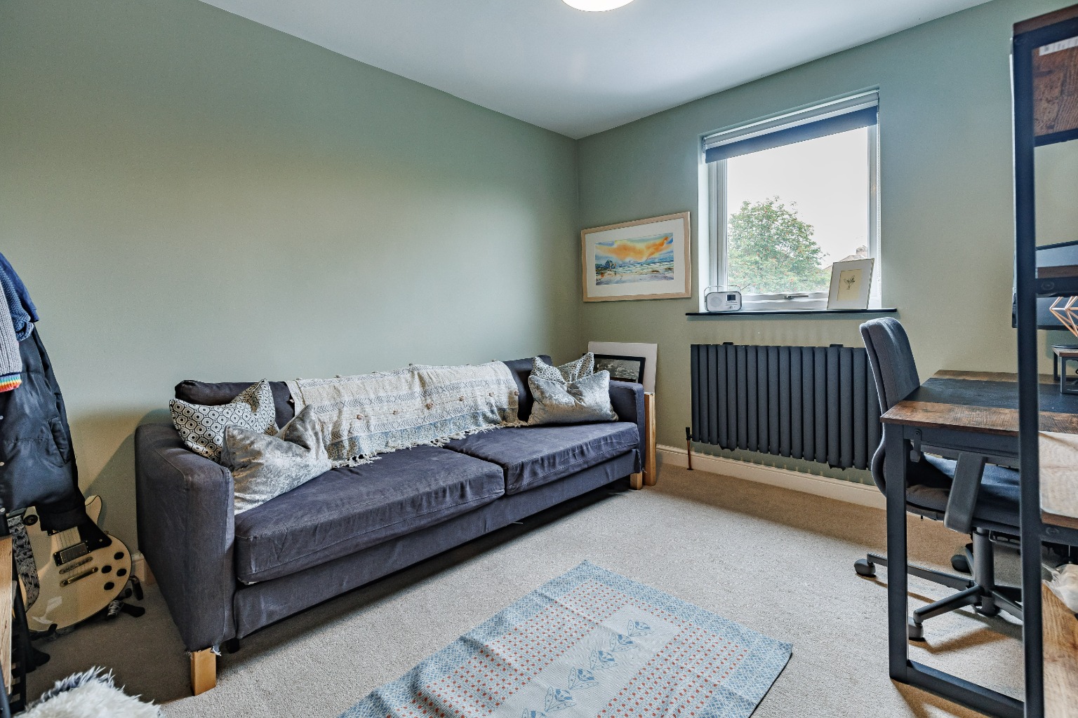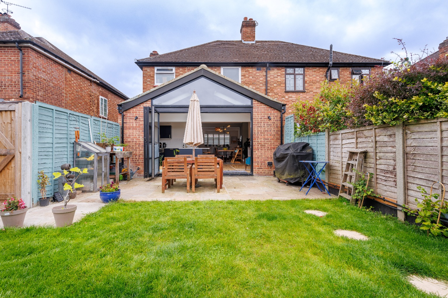 The garden, laid to lawn, provides a tranquil retreat, perfect for relaxing or hosting summer gatherings. Additionally, a garden room offers the flexibility to be used as a home office, gym, or even a playroom for the little ones.