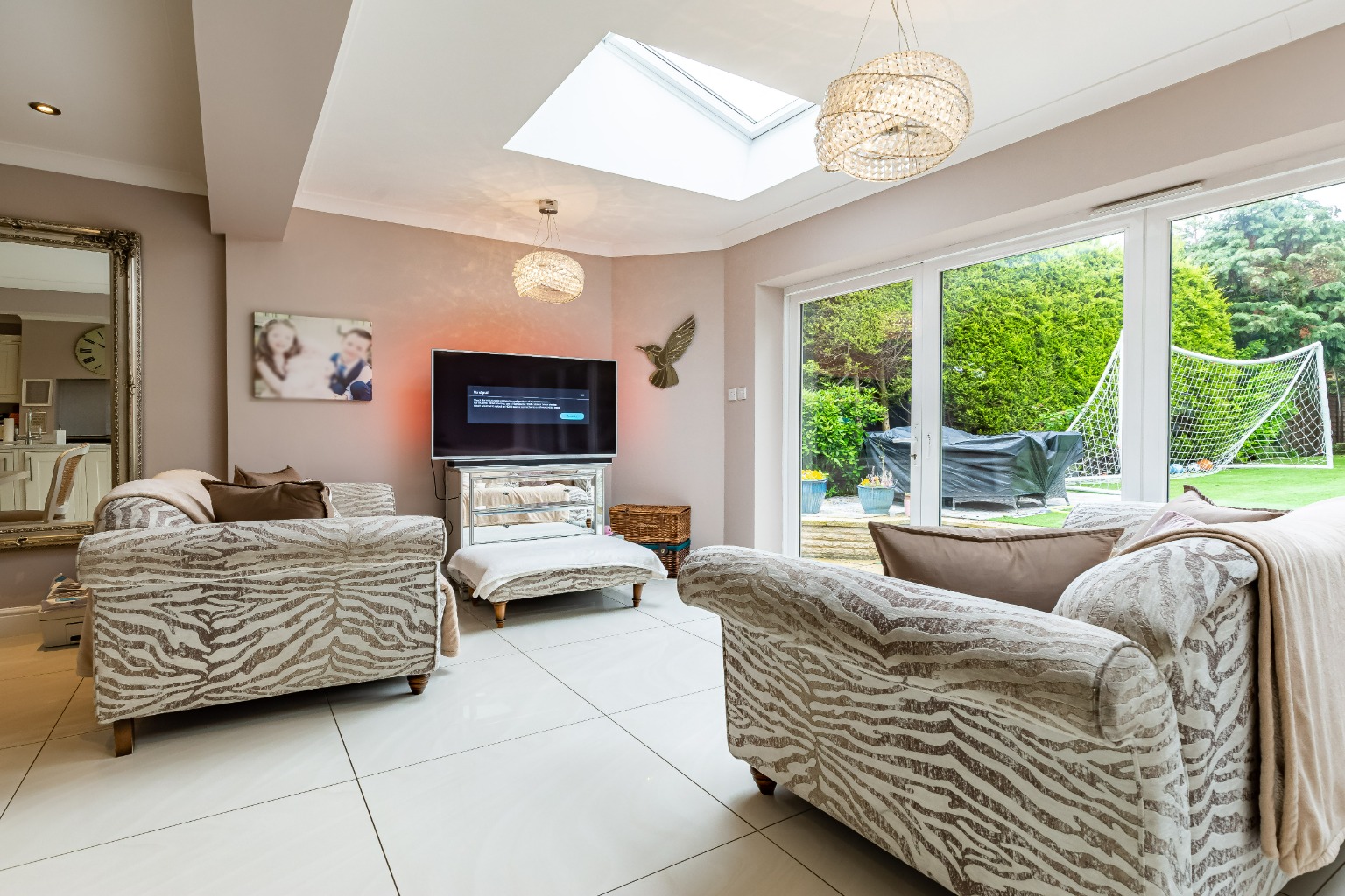 Walking through the entrance of the property you are greeted by a large entrance hall with central staircase leading to the first floor, a beautifully presented reception room to the front of the property and a large modern family room with fitted kitchen, including impressive island and dining area. There are two large skylights with bi-fold doors right across the rear of the property leading out onto the south facing patio and garden. At the bottom of the garden is a well thought out garden room utilized as an office come lounge area. Heading back into the property there is also a utility room and downstairs cloakroom. On the first floor of the property you will find three double bedrooms and a spectacular family bathroom with freestanding bath tub and separate double shower. To the second floor loft conversion you will find the principal bedroom with floor to ceiling windows, allowing lots of natural light and the benefit of an en-suite bathroom. To the front of the property there is a large driveway providing off-street parking.