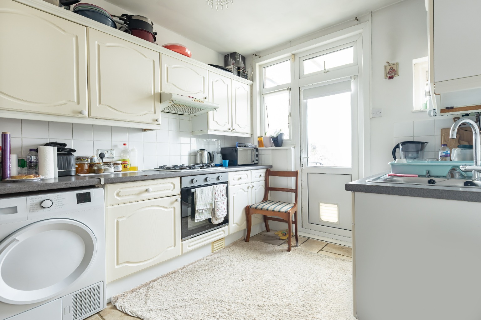 The adjacent kitchen is a sleek and functional space, with ample countertop space, and integrated appliances. Whether you are an experienced chef or simply enjoy preparing meals, this kitchen fulfils all your culinary needs.